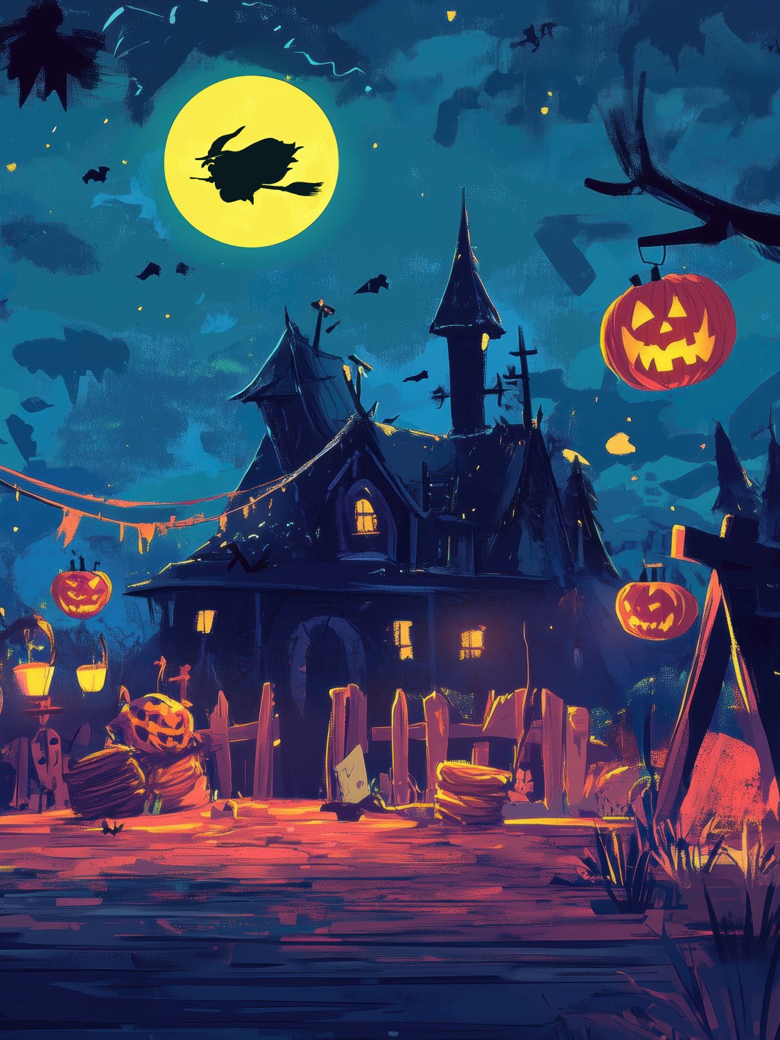 Halloween - Haunted House Night Scene