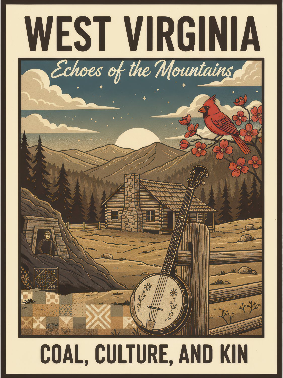 Celebrate your love for the Mountain State with our Coal, Culture, And Kin Poster. This poster is a perfect tribute to the state’s rich heritage and strong community spirit. Whether you’re decorating your home, office, or dorm, this bold design proudly showcases your connection to West Virginia. Ideal for fans, residents, and alumni alike, this poster brings a touch of state pride to any space.